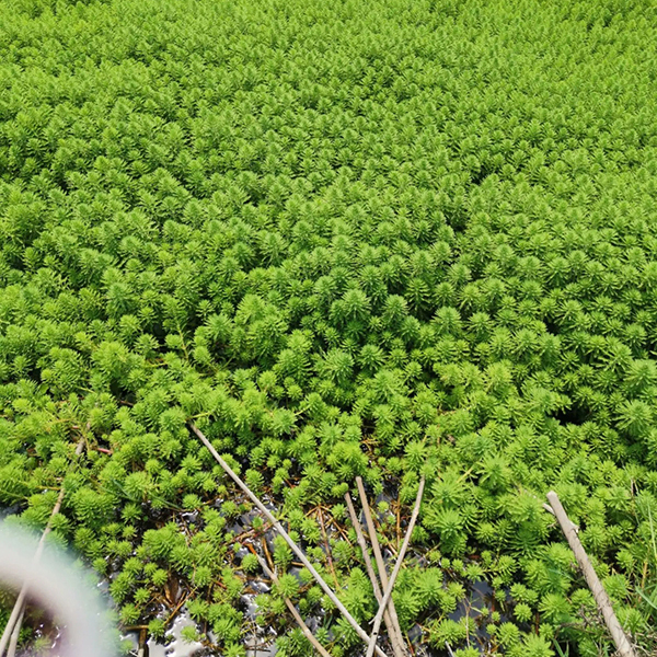 金魚藻(學(xué)名:Ceratophyllum demersum L.)是金魚藻科金魚藻屬、多年生草本的沉水性水生植物,別名細草、軟草、魚草。全株暗綠色。莖細柔,有分枝。葉輪生,每輪6-8葉;無柄;葉片2歧或細裂,裂片線狀,具刺狀小齒。花小,單性,雌雄同株或異株,腋生,無花被;總苞片8-12,鉆狀;雄花具多數(shù)雄蕊;雌花具雌蕊1枚,子房長卵形,上位,1室;花柱呈鉆形。小堅果,卵圓形,光滑。花柱宿存,基部具刺。花期6-7月,果期8-10月。